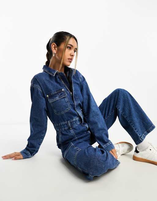 River Island long sleeve cargo denim boilersuit in dark denim ASOS Very well made.
