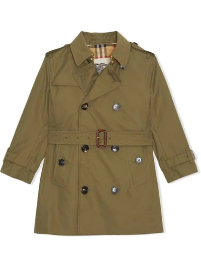 Kids Cotton Gabardine Trench Coat In Green Very well made.