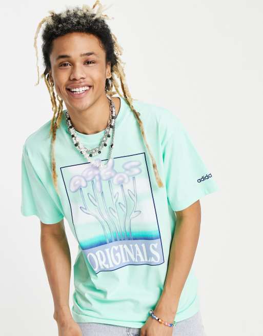 adidas Originals SPRT T Shirt in Gr n mit Blumen Grafikprints Very well made.
