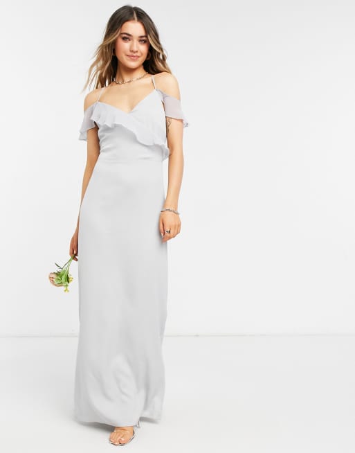 Oasis Bridesmaid ruffle satin maxi dress in pale grey ASOS Very well made.
