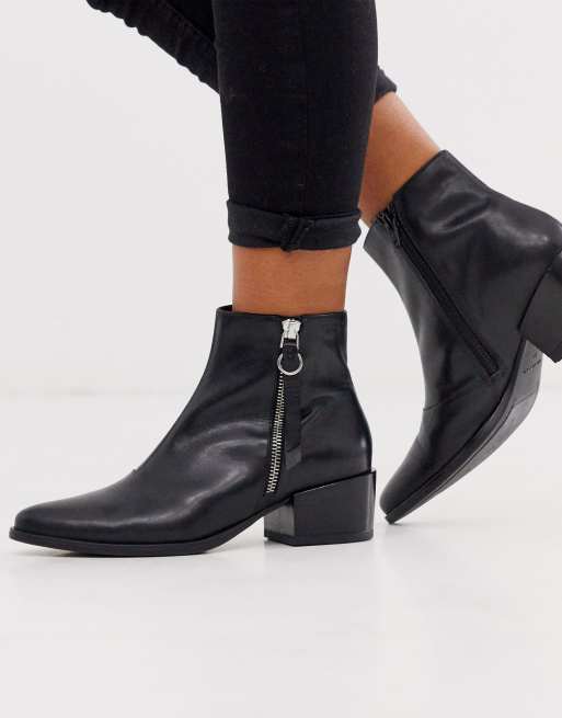 Vagabond Marja black leather flat ankle boots with side zip detail Very well made.