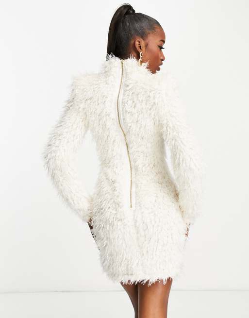 ASOS LUXE extreme shoulder fluffy knitted sweater dress in white Very well made.